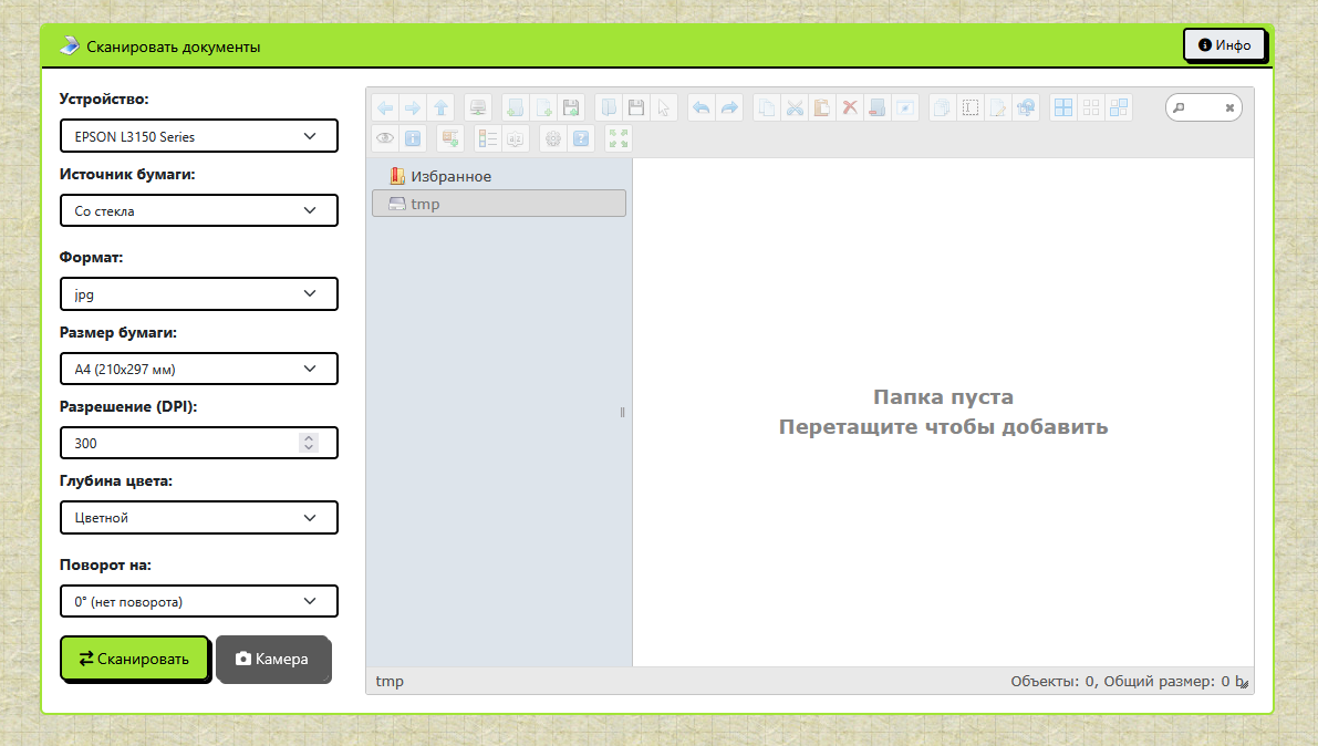 Подключение обычного USB-сканера (WIA/TWAIN)